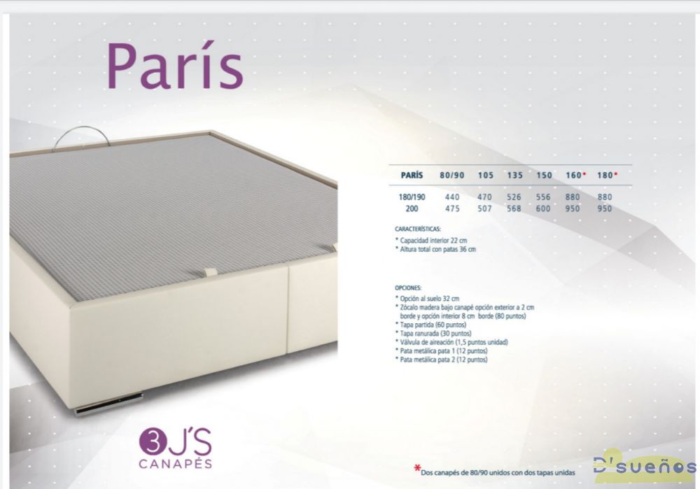 Canapé tipo bañera tapizado con interior de madera textil. Tapa metálica 3D transpirable. Capacidad interior de 22 cm y altura total con patas,36 cm.